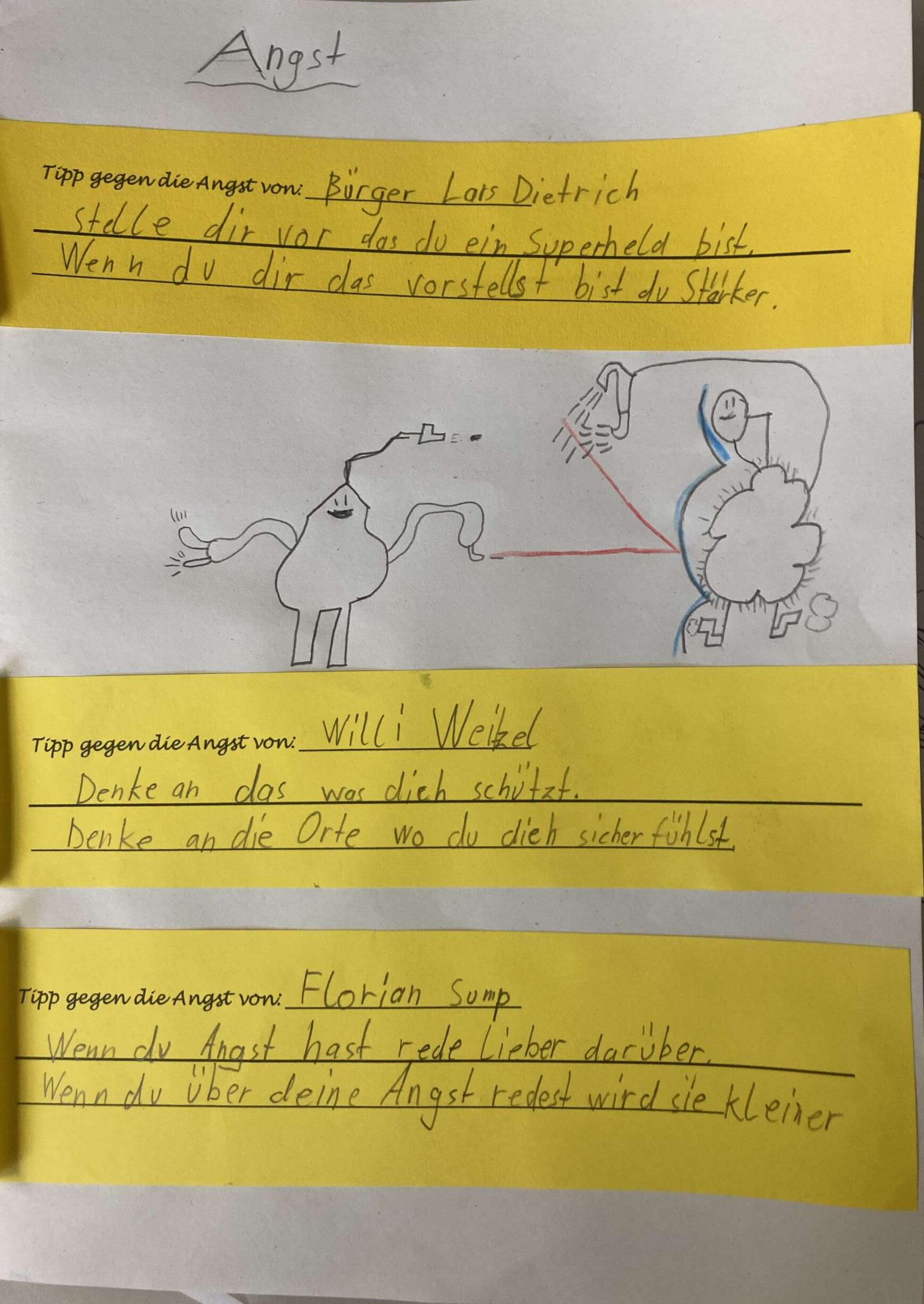 Wut, Traurigkeit, Mitgefühl, Angst und Freude sind Themen, die die Kinder besprechen wollen… Wir nähern uns der Angst in dem wir Kleien und große Ängste sammeln und Tipps für den Umgang mit der Angst suchen.